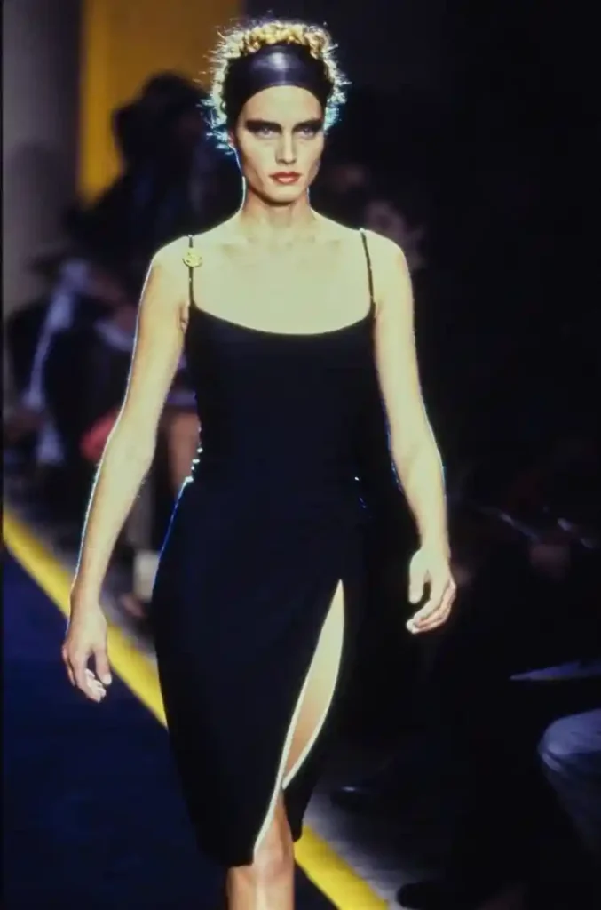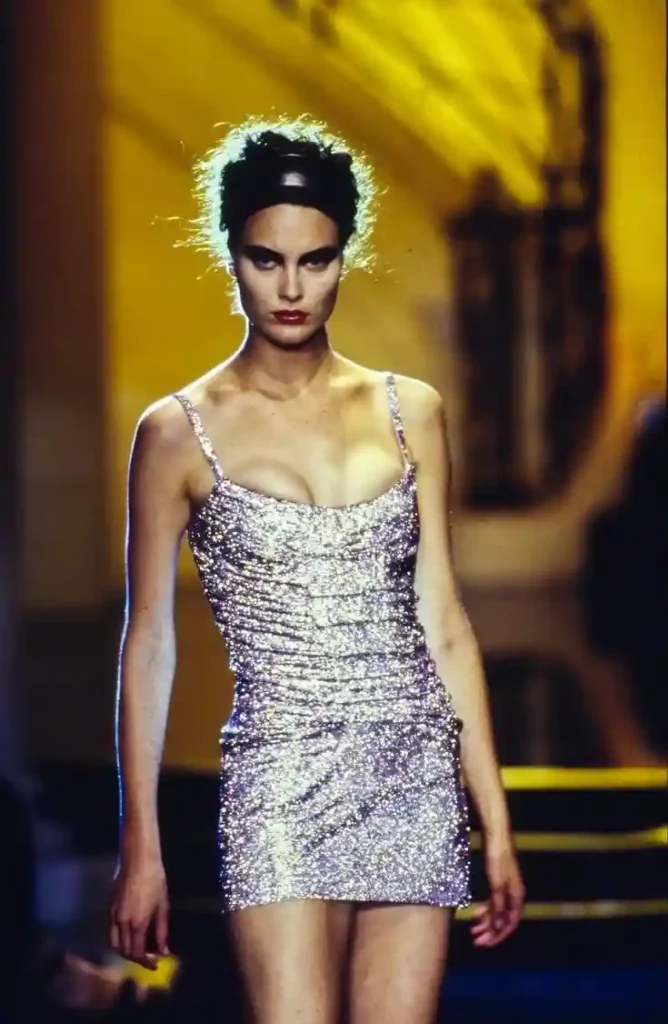 At the top of his glory, Gianni Versace kicked off haute-couture week with a bang. Previously the Italian designer appeared in the catalogues of two exhibitions: “Japanese and Fashion” at the Palais Galliera (1996) in Paris and “The Glory of Byzantium” at the Metropolitan Museum of Art in New York (1997). Nine days after the show, Versace was killed outside his Miami villa by Andrew Cunanan. The shock was worldwide: all brand’s boutiques closed their doors and numerous fashion events were cancelled. It was his sister, Donatella Versace who took over the house and debuted her first collection in Milan just few months after Gianni’s death, announcing the beginning of a “new era”.