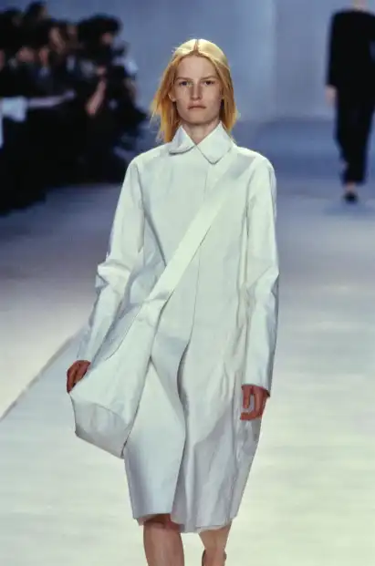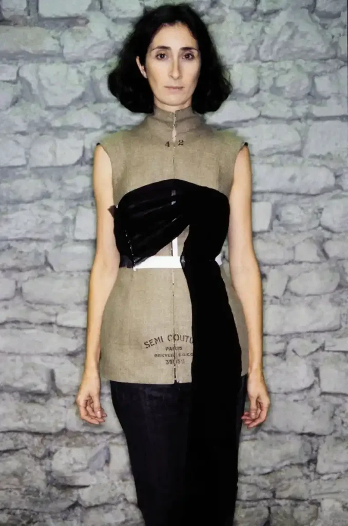 Repurposing of clothing is the signature of Martin Margiela. Since his debut this fashion disrupter revisited the classics and the foundations of the draping technique.In his spring-summer collection Margiela went even further: he created garments based on a bust of a “Stockman” mannequin worn as a waistcoat and on which the different stages of its design were apparent. What is used to be hidden were revealed! The idea was so brilliant that the Belgian designer continued to explore it for his fall-winter season, featuring raw leaning and paper worn like real cloths.