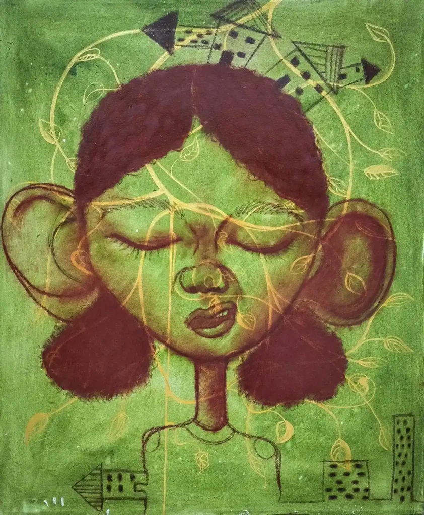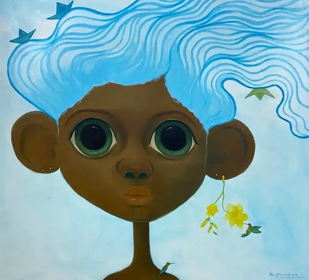 Adulphina Imuede is a creative based in Lagos, Nigeria. Her art is stylised, surreal, and sometimes experimental. She described it as being a reflection of her thoughts and who she is. Her works are very feminine too and allow every woman, no matter her age or skin hue, to identify with a character. Under the condition of believing in every day miracles and romantic.