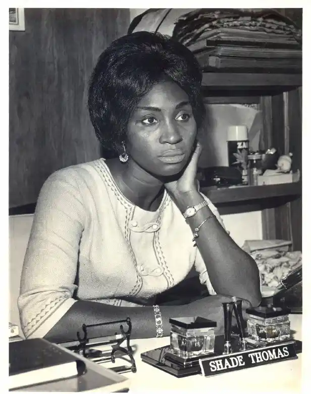 Shade Thomas-Fahm moved to England in the early 50s to train as a nurse, but then changed careers and started studying fashion at St Martin’s School of Art (now Central Saint Martins) in London. She returned home to Lagos in 1960, the year of Nigeria’s independence, and opened her own boutique, Maison Shade. Thomas-Fahm is a passionate advocate of Nigerian fabrics, often using «aso-okè», «adire», «akwete» and «okene» in her designs.