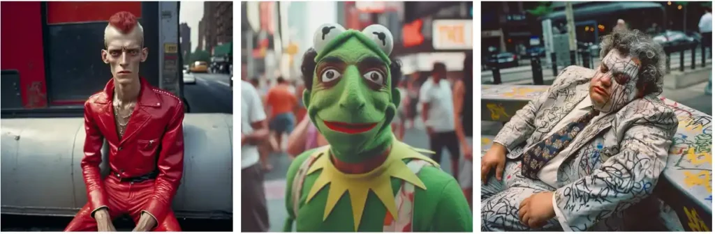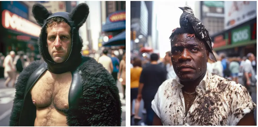 Thanks! I’ve always loved street portrait photography. I’m a big fan of Diane Arbus, Andy Sweet, and Meryl Meisler, to name a few. I’m also completely in love with New York City, and I’ve been drawn to it since I was a kid. So many of my favorite films take place in 80s NYC, so it’s always been a magical place for me. I visit as often as I can, which is usually once or twice a year. I even once spent 5 months there. So when I started generating AI images, it only seemed natural to make portraits in NYC. I really didn’t give that aspect of it much thought. And then as my work evolved, I realized I was creating a weird and nostalgic New York that we all know and remember, but that never actually existed.