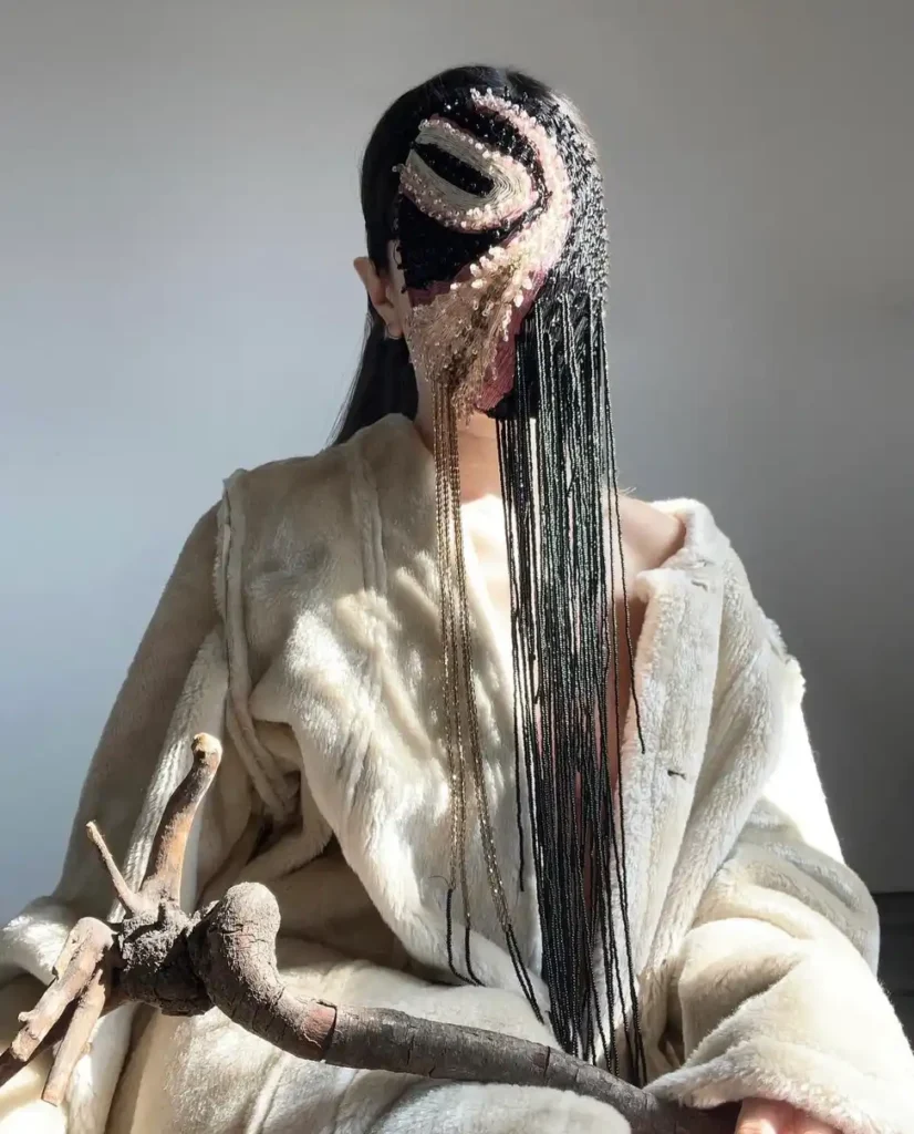 Anastasia Pilepchuk is a Berlin-based artist with Buryat roots. She creates fantasy masks and face jewellery inspired by the nature and the culture of her beautiful and mystical region. She was born in Yakutia, located in the Russian Far East, where shamanism still exists and is practiced today. This cultural code is evident in Anastasia’s work. As in the traditions of shamanism, masks have an important role in her work. They are a kind of threshold between her inner and outer world, which hides something and somewhere opens a veil of mystery.