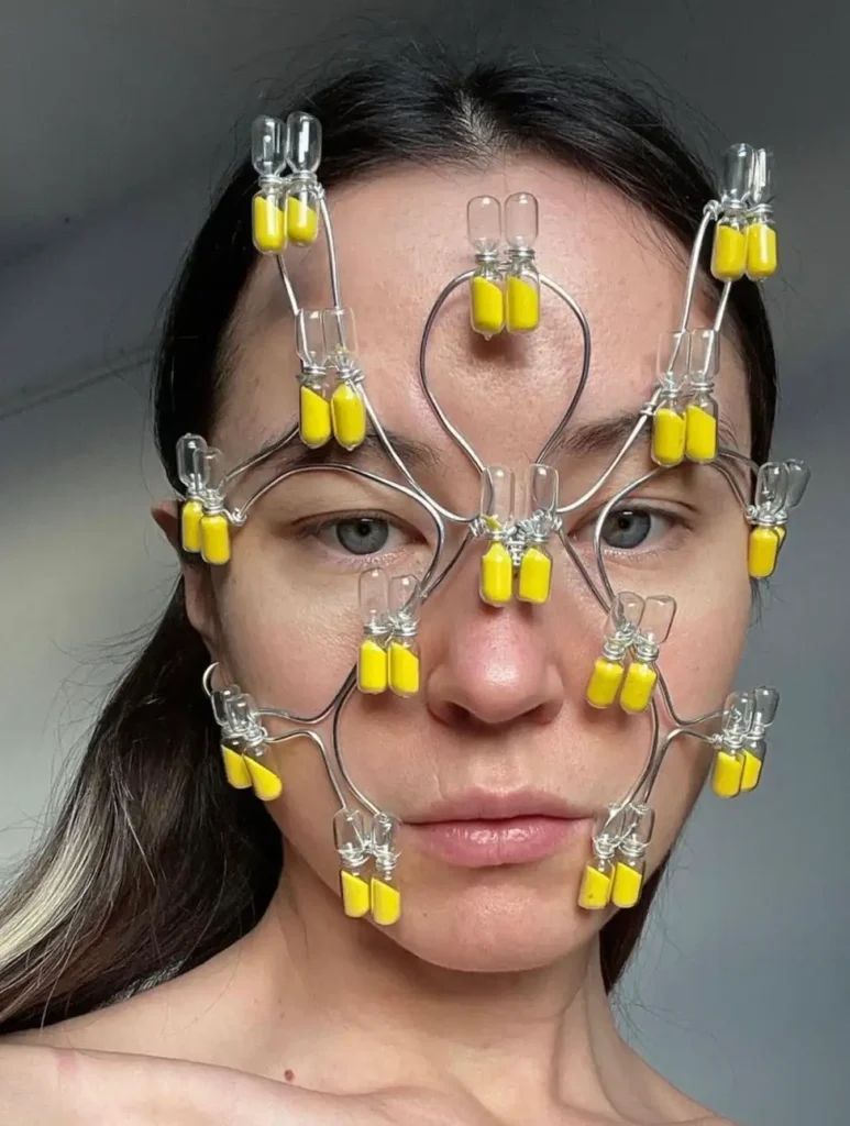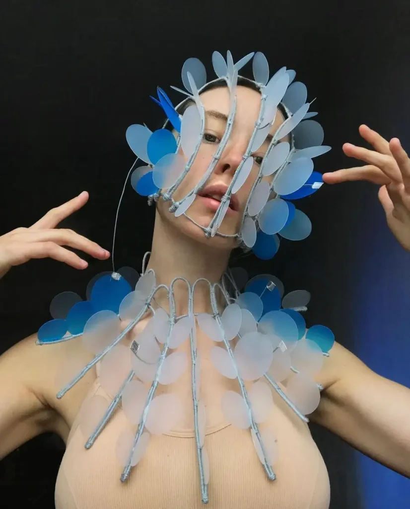 Now I am very into creating masks from bio materials. I have already made a mask from SCOBY, a mask from agar agar, and in the process a few more unusual materials. By doing this, I try to increase awareness of environmental issues and satisfy my passion for science.