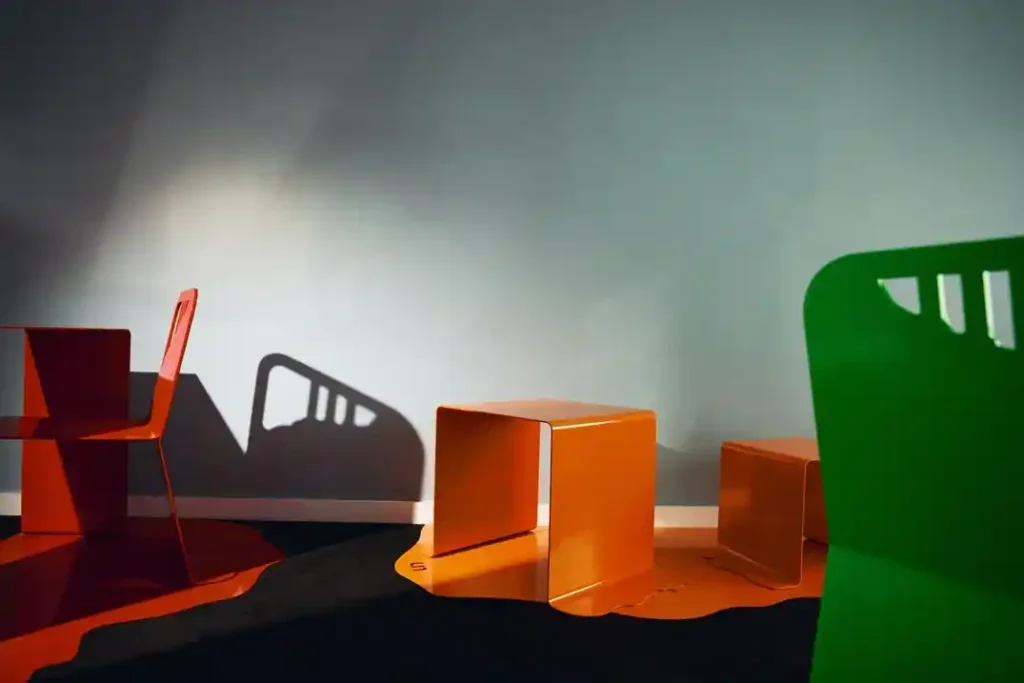 Unform Studio’s Drip Collection blends industrial metal with poured paint art, redefining furniture..