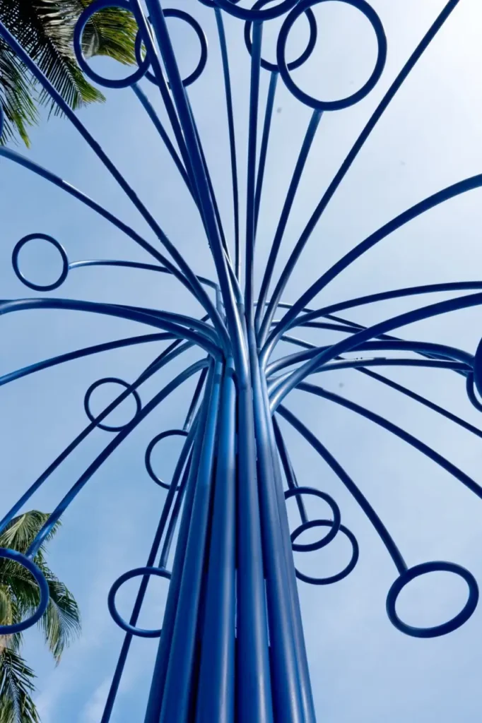 The deep blue hue of the HOOPS Tree makes a striking statement against Miami’s coastal backdrop, inviting onlookers to immerse themselves in its visual splendor. This interactive installation not only showcases Hendry’s artistic prowess but also offers an exhilarating challenge: sink 34 consecutive baskets in each hoop, captured on video from December 6th to 9th, and win a staggering prize of one million dollars!