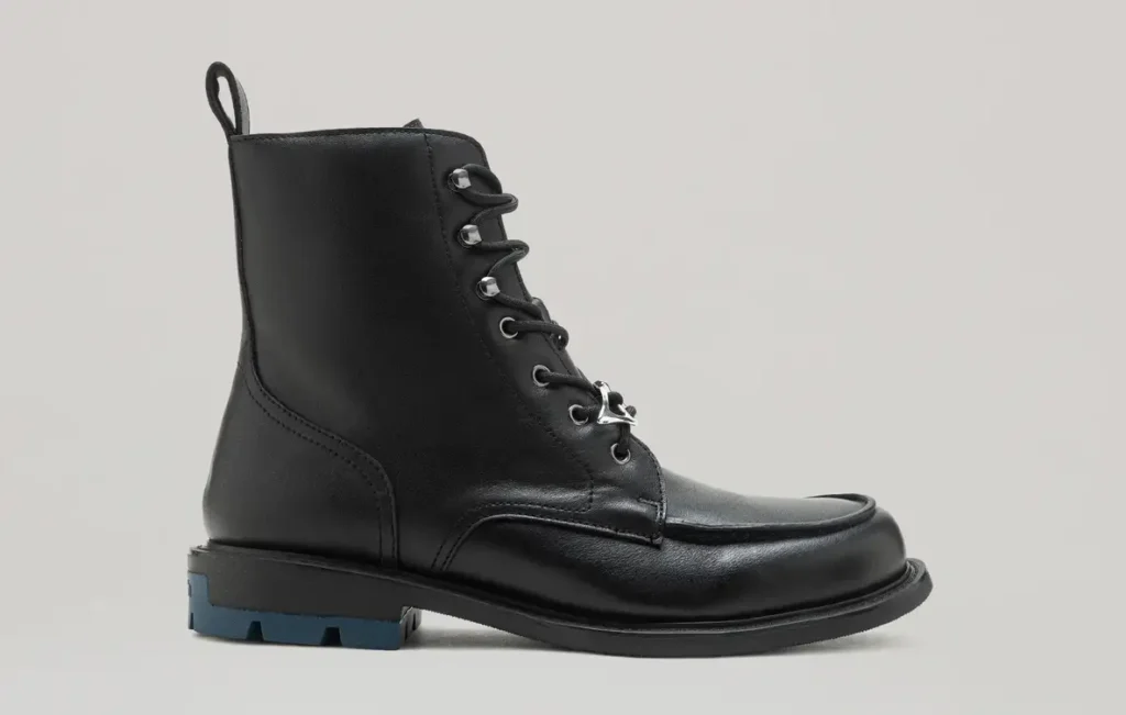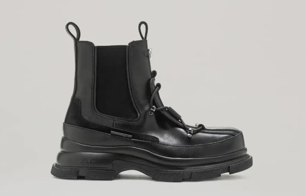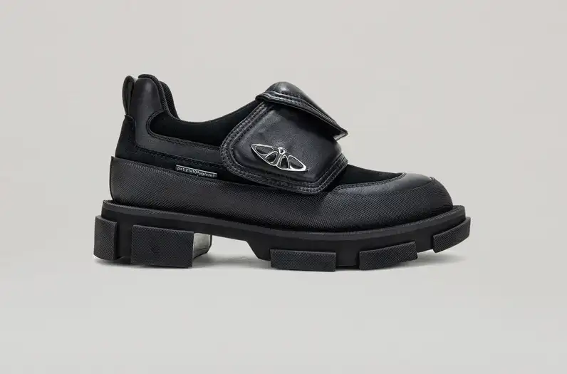 A bestseller for both, the GAO EVA FW24 collection delivers a fusion of cyberpunk and outdoorsy aesthetics. Hiking shoelaces run through the collection, even on Chelsea boots, accented with the metal moth embellishment. Inspired by 90s club culture and nightlife, the collection prioritizes comfort and functionality with padded edges, elastic laces, and reinforced rubber sheet patches.