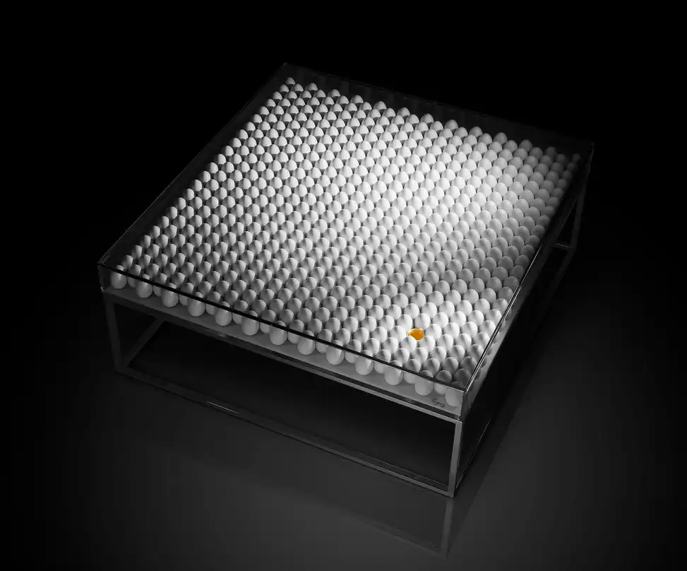 Being a culinary photographer, in the creation of the work for the exhibition, he was inspired by his photography “Be different” with 780 eggs, that served to creat a sculpture made from 564 white eggs, with only one egg which is unveiled, to symbolize its distinction, to radiate amidst its counterparts, to boldly emerge, to exist in a unique manner.