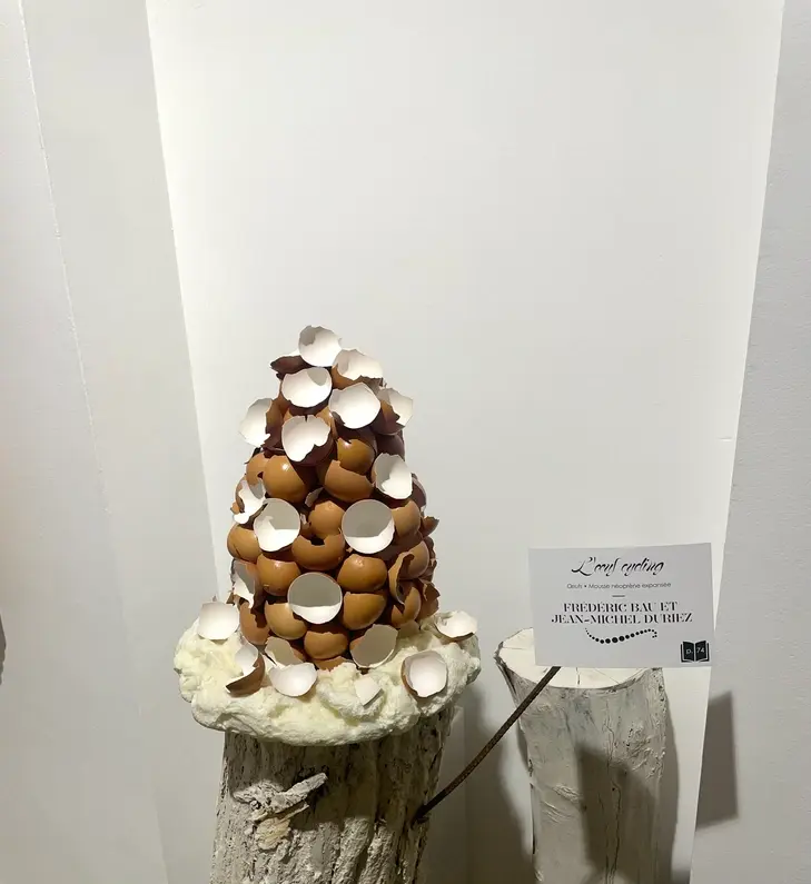 FrĂ©dĂ©ric Bau , a famous French pastry and chocolatier, also known as a Creative Director of the Valrhona chocolatier, the creator of Dulcey Blond chocolate and the founder of L’École du Grand Chocolat Valrhona, has been exploring the basics of a new healthy and virtuous baking with the help of a scientific and artistic approach. This is what prompted him to create an exhibition L’Œuf, de Mains de MaĂ®tre dedicated to the mysterious Egg, “an endless source of inspiration in art and craftsmanship”.