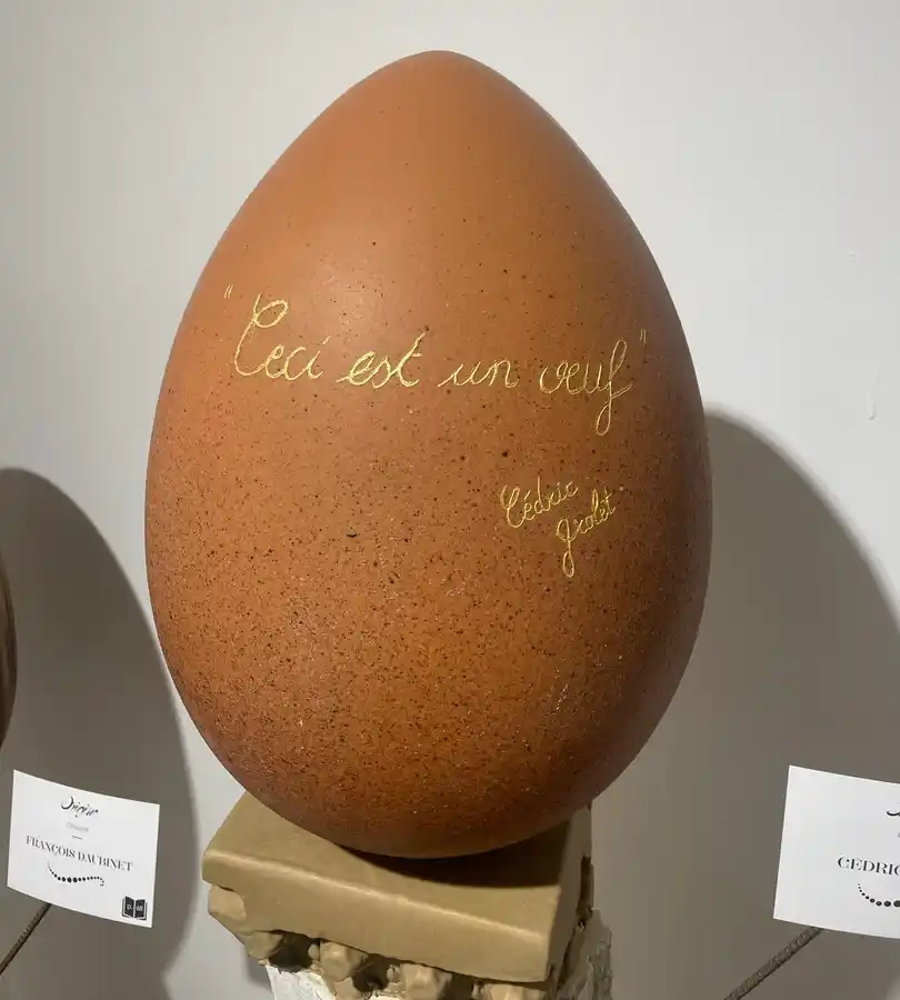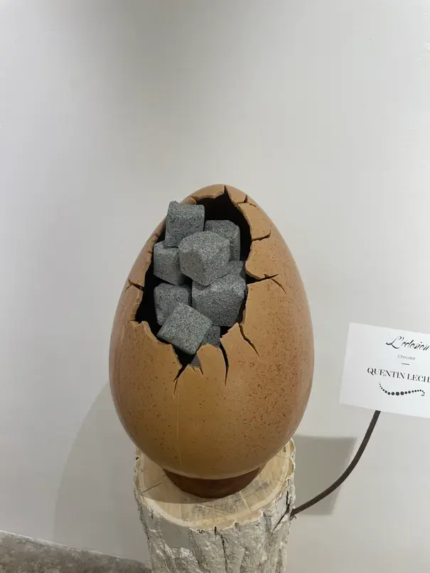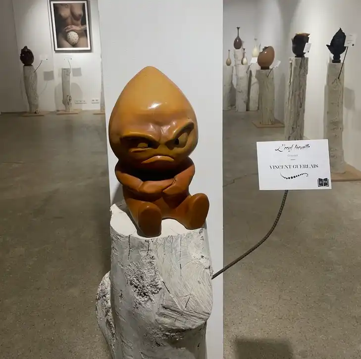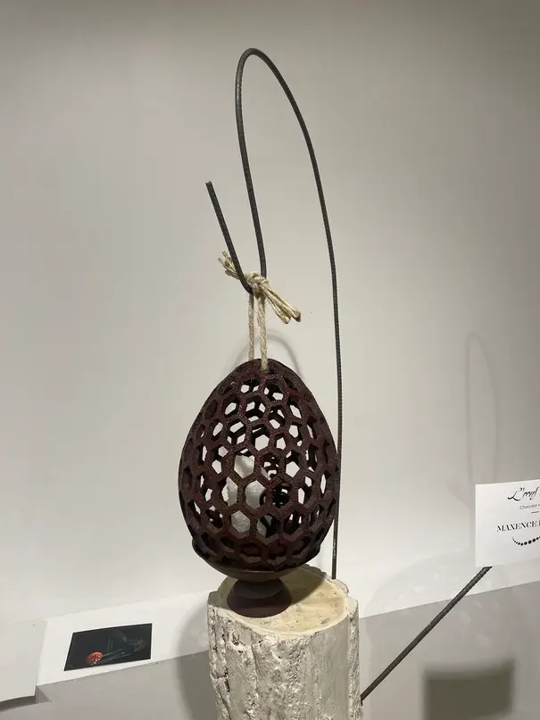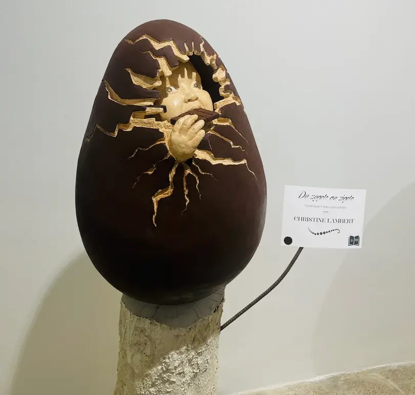 The artist presented an Egg with a newborn, eating chocolate. In his work he uses earth as a way of self-expression. His pieces are roasted in the oven, in patina or smoking. His masterpieces draw inspiration from the natural world and globetrotting adventures.