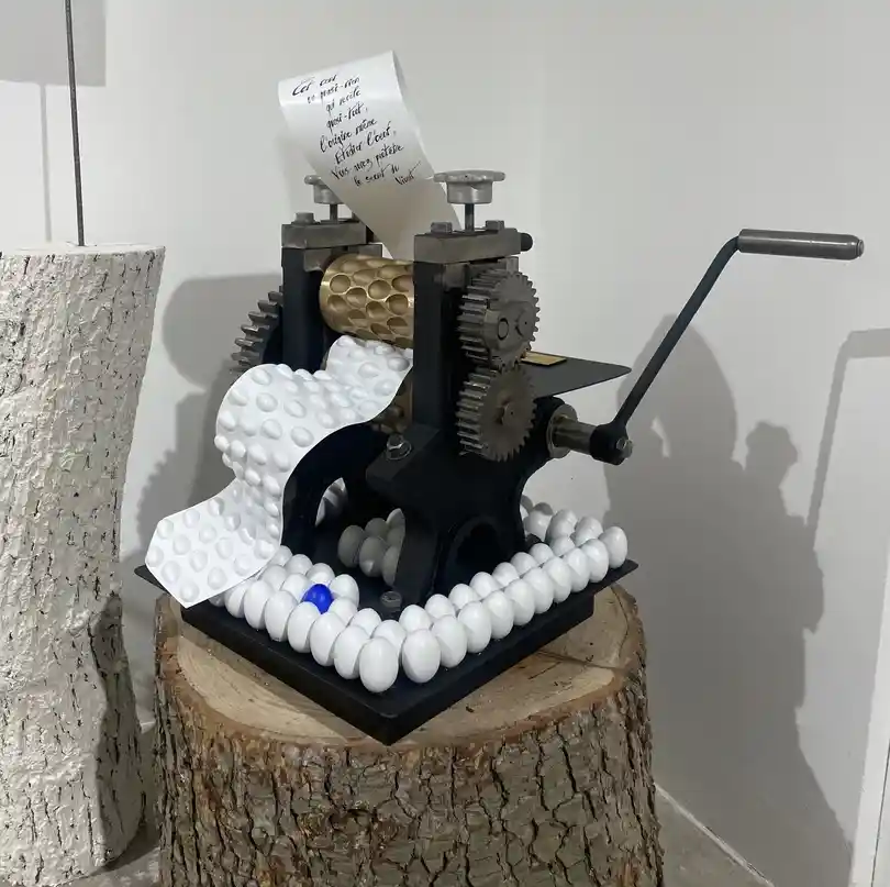 At the age of merely 26, back in 1991, he stood as one of the most exceptional employees at the renowned French chocolate and confectionery manufacturer, presently acknowledged globally. He conceived a “matrix”constructed from metal, a compilation of extremely ancient steel and brass components, that have been used for over a century in the production of nougat eggs. “The artist sees in this the purpose of the mechanical creation of a man in the “matrix”, a woman in the service of Christmas, as well as in the birth of a human being. An Egg is almost nothing, which contains almost everything: the origin itself”.