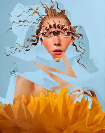 I love people eyes, of all the colors and shapes, I love how we can express with our eyes, sometimes speaks before the mouth and that’s why I used them so much. Sometimes I use catholic elements, because I was in a catholic school when I was a child and i had tons of questions that my teachers never knew how to answered me. I love big hairs, lips and how the body can express things using the arms.