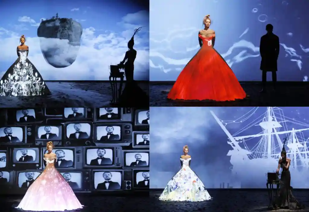 New technologies have always intrigued me. In 2012, we did a new version of Charles Perrault’s tale “Peau d’Ă‚ne” (“Donkey Skin”). The model on stage wore a large white dress, which was a projection screen on which the 3D mapping system projected various images and simulated ultra-realistic effects.