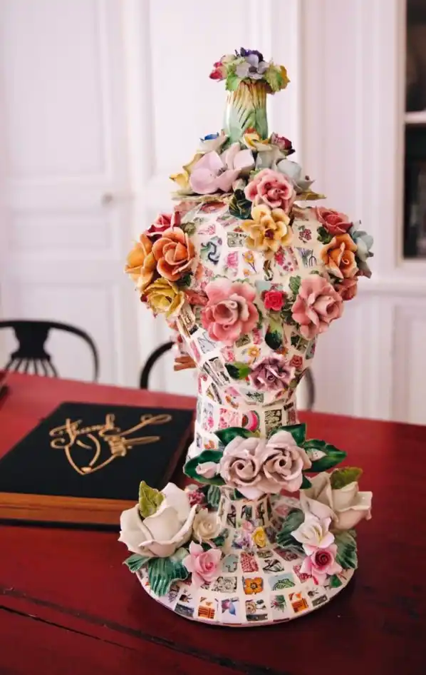 A few months ago I had the pleasure to meet the French Haute Couture designer Franck Sorbier.He has more than 30 years of experience in fashion. Franck Sorbier is the only Master of Art among all fashion designers, and he is one of only 14 designers in the world with the title of Grands Couturier.He welcomed me to his studio, where I had the opportunity to discover his last Haute Couture collection and personally interview him. I was able to enjoy a private view of some of his art works: recycled vases, drawings, collages, accompanied by descriptions from the artist himself.