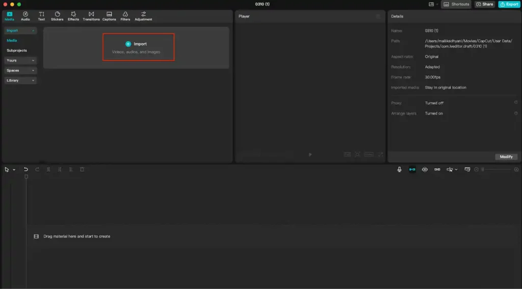 Begin by launching the CapCut Desktop Video Editor on your computer. Once the application is open, you’ll need to upload the video you want to add captions to. To do this, click on the “Import” button or drag and drop your video file directly into the media library. After uploading, drag the video onto the timeline at the bottom of the screen. This sets up your project and allows you to start editing.