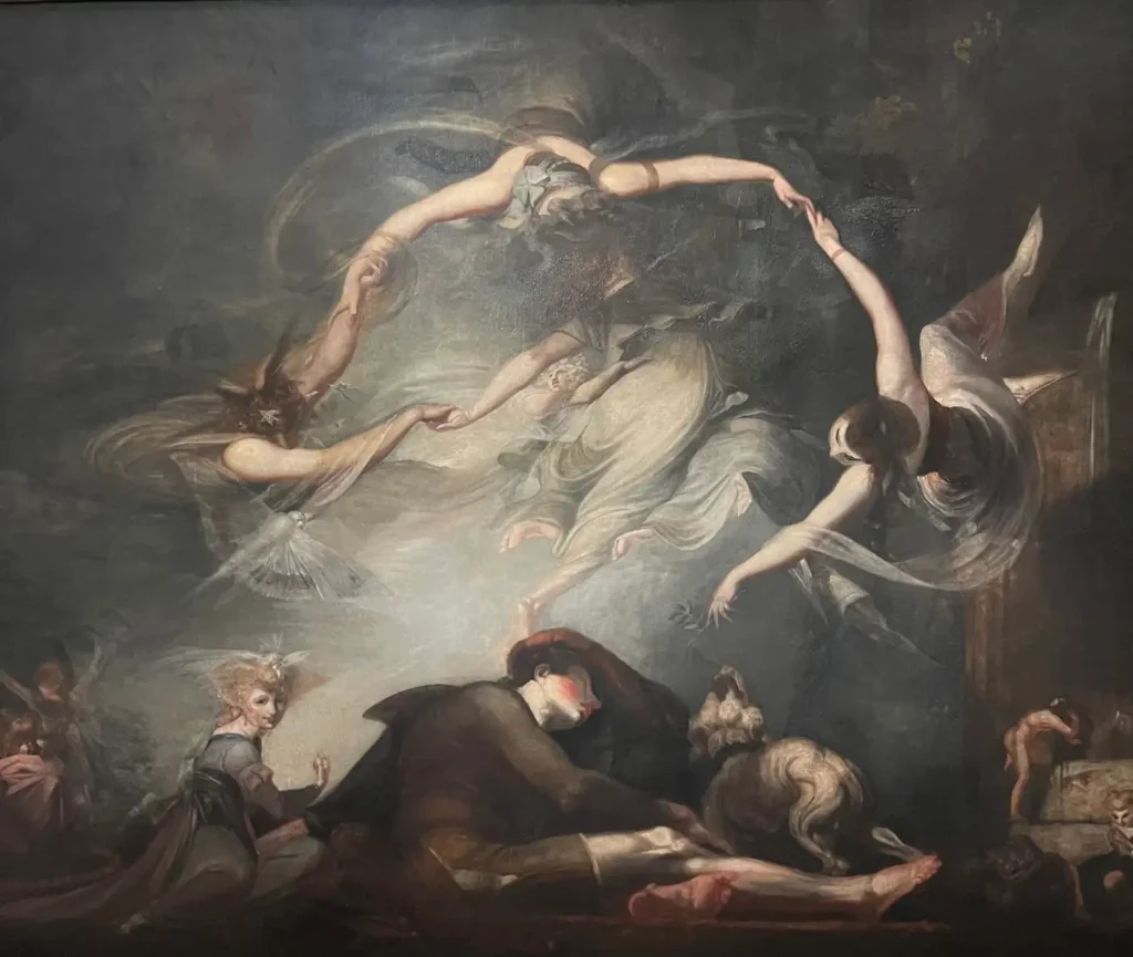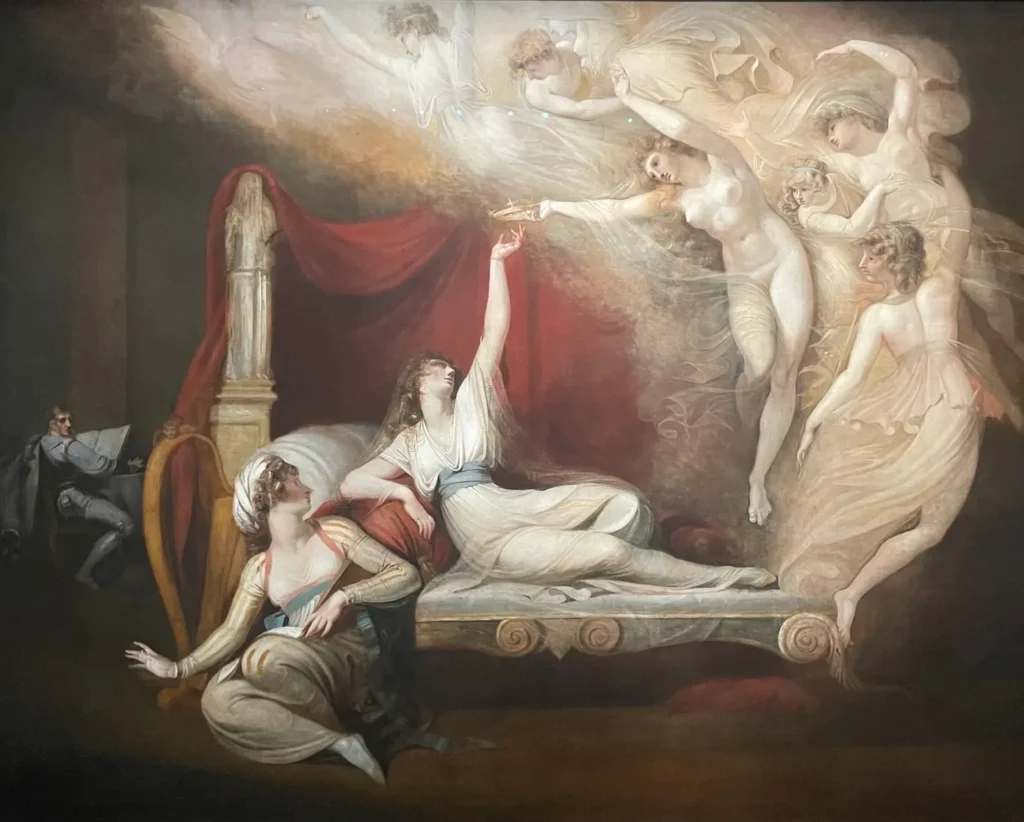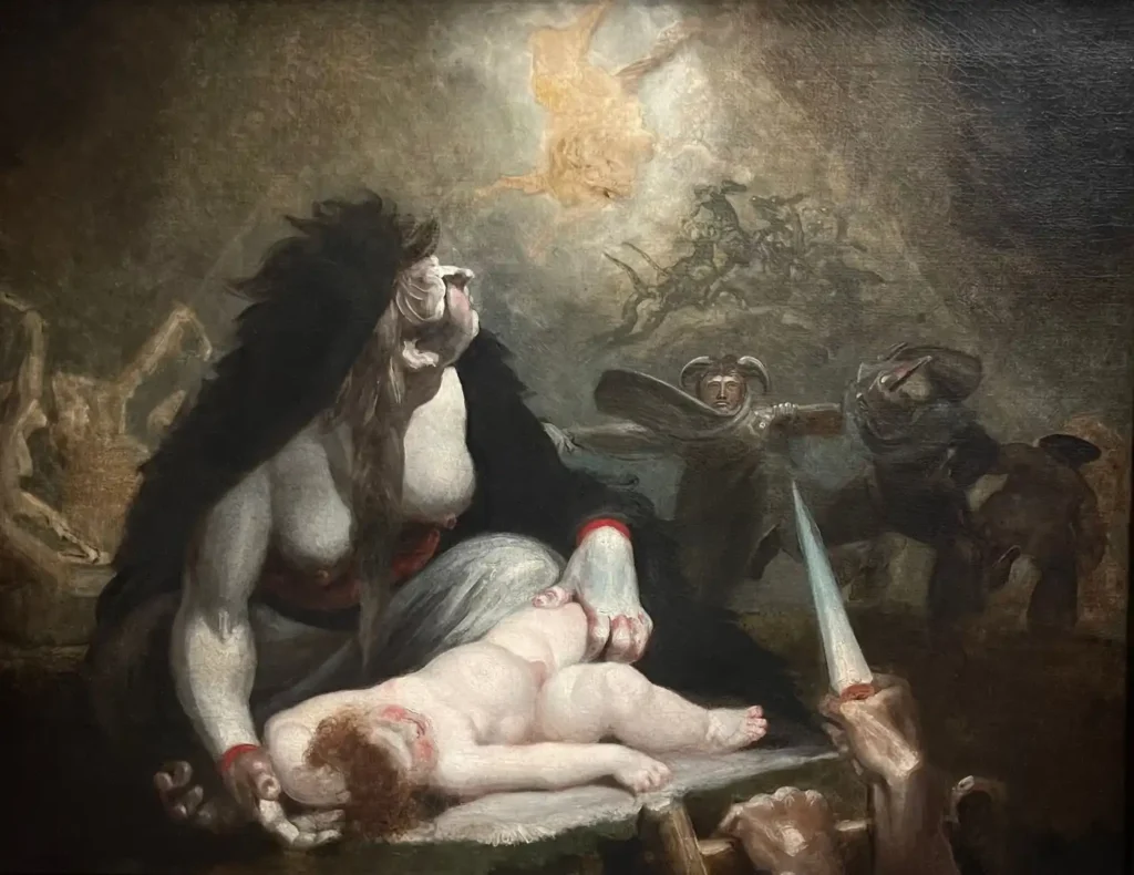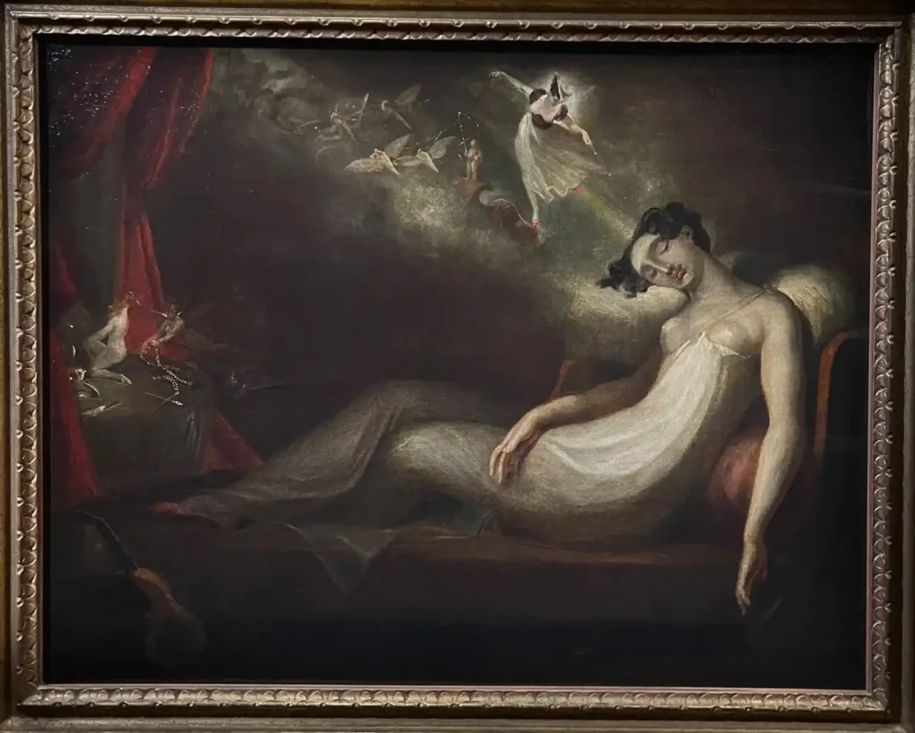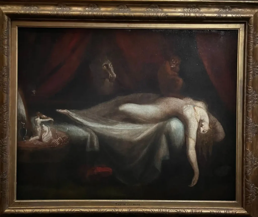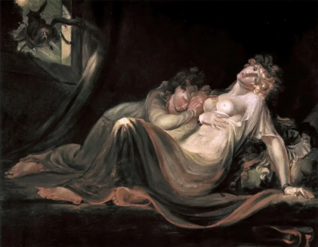 The most famous work of this Swiss artist is undoubtedly “Nightmare”, or, to be more precise, a series of four paintings. In these famous oil paintings, Fuseli depicted an incubus seated on a sleeping woman. An incubus is a demon who appears to a woman at night when she is asleep and seduces her (the male equivalent is a succubus). These ‘sexual’ demons are actually a symbol that combines repressed desire and fear of desire. Freud later explained that unwanted sexuality is expressed in our dreams as a nightmare and FĂĽssli figured it out himself much earlier, after studying European folklore: where female demons and male ones torment the hypocritical righteous and their facially virtuous wives with lust at night.