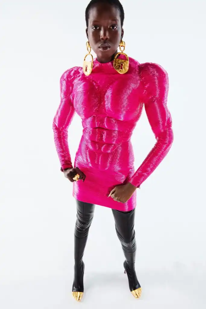 Strong and power, sculpturally beautiful, with prominent shoulders and endless bare legs Rousteing’s heroine doesn’t really need a man to save her life as she is perfectly capable to stand up not only for herself but for him as well. “Our finest arm can also be in our self-attitude”, – seems to tell us Olivier.