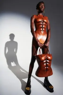 Created in partnership with the French leather artisan Robert Mercier (who collaborates with Balmain and Jean Paul Gaultier as well) cuirass dresses and bustiers, made of leather, sculpt and protect. Desirable and unattainable at the same time.