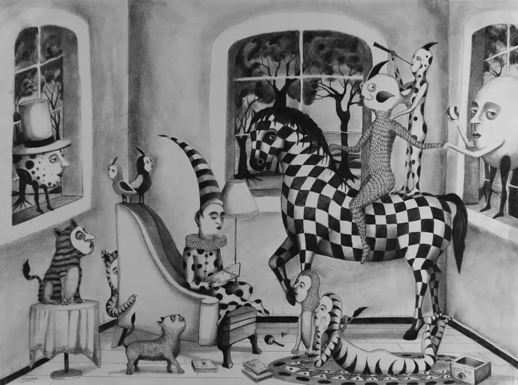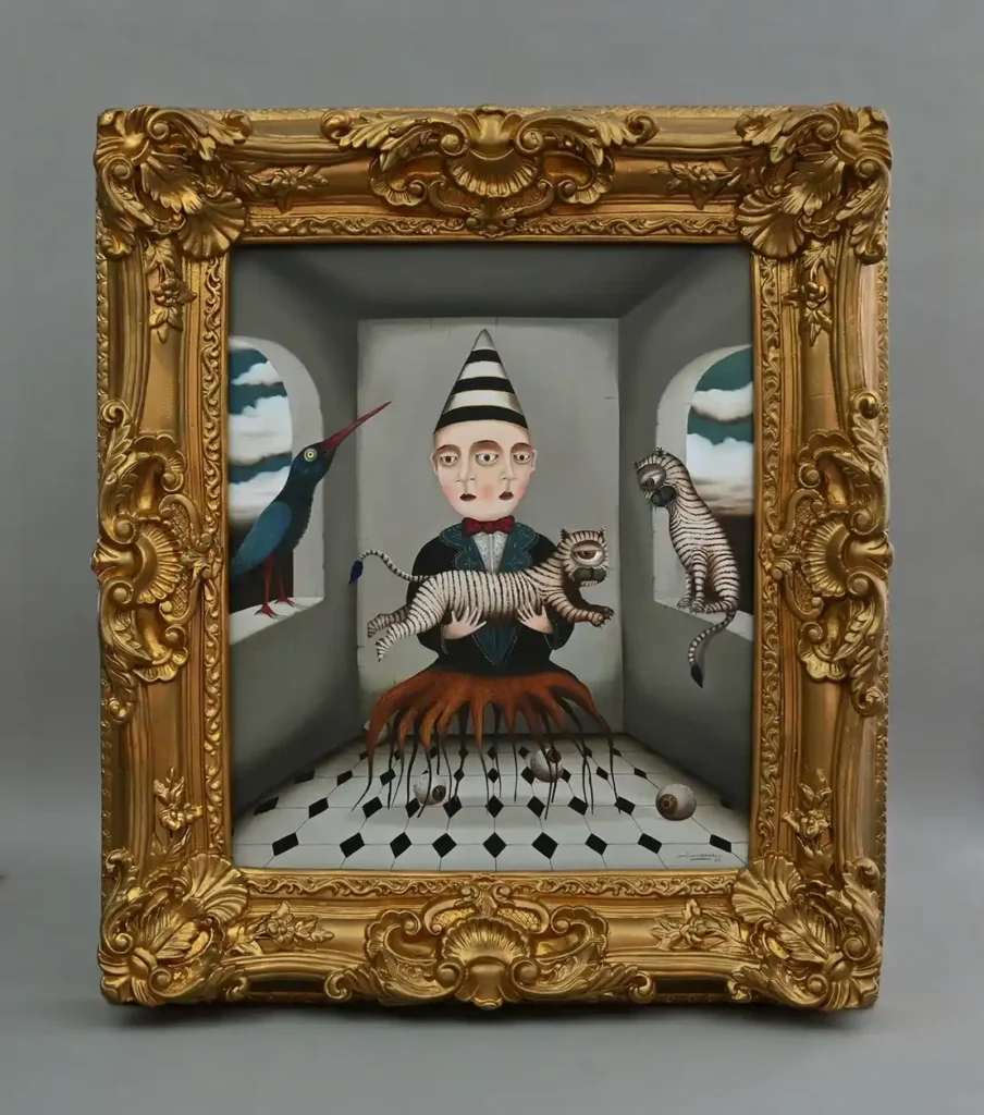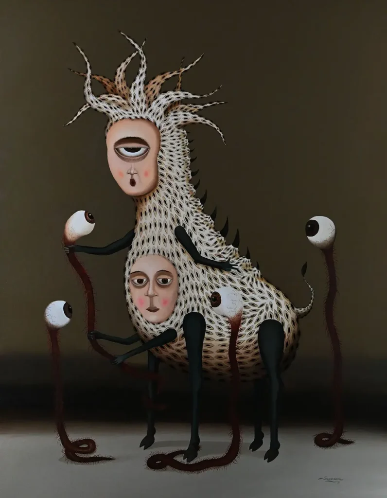 From childhood Marcelo absorbed the mystical energy of his surroundings. The folkloric traditions of his city, as well as the magical Bolivian altiplano landscapes are reflected in his works, and have produced in his imagination many bizarre, surreal creatures.