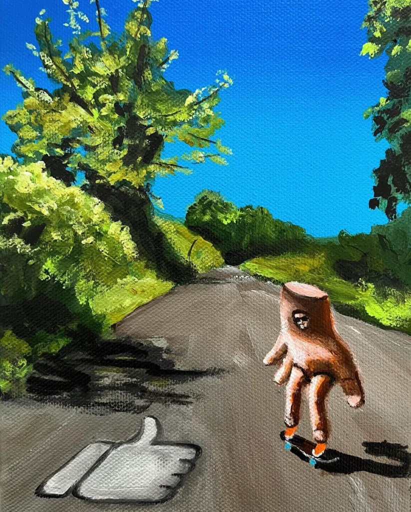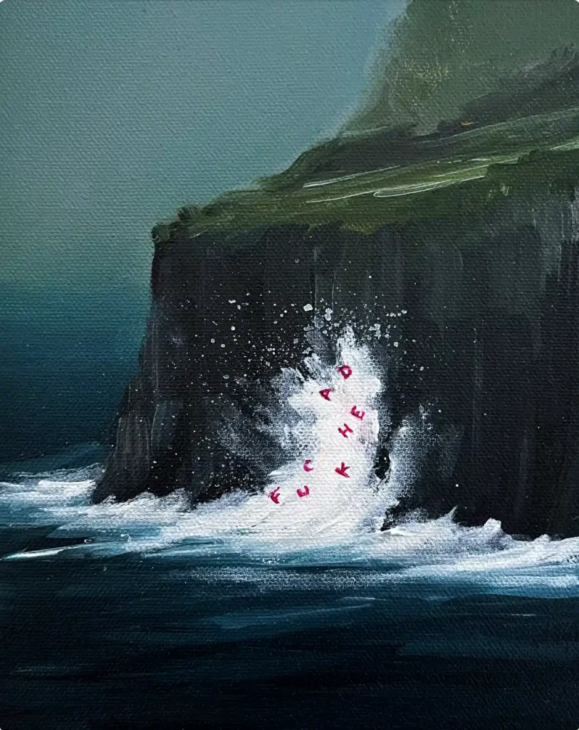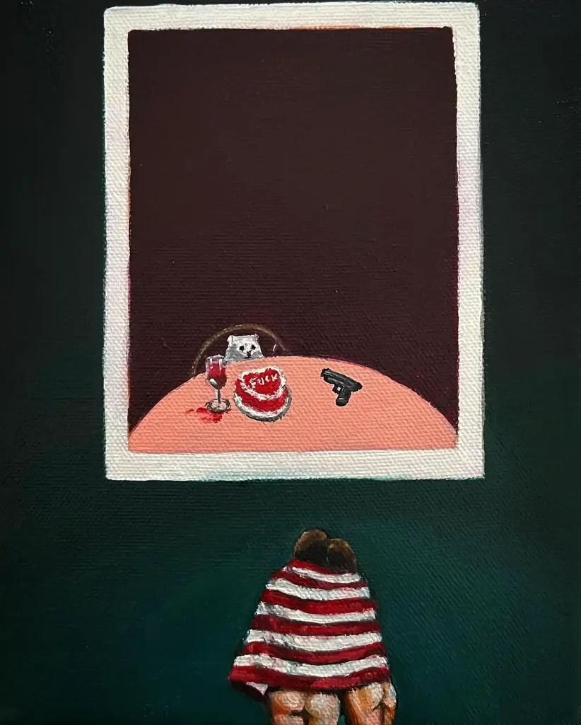 Personally i think my artwork is simply a reflection of myself. I am a relatively quiet person, but my thoughts and ideas can be quite provocative, i just find it amusing. I really love dark humour and I find the truth, as uncomfortable as it can sometimes be, is where the interesting and funny aspects of life can be found, and that is what interests me the most. It is just more fun. The concepts usually develop as i start painting, i rarely have an idea before i paint of where it is going to go, i just start and see what happens, and it usually starts to make sense to me somewhere along the way.