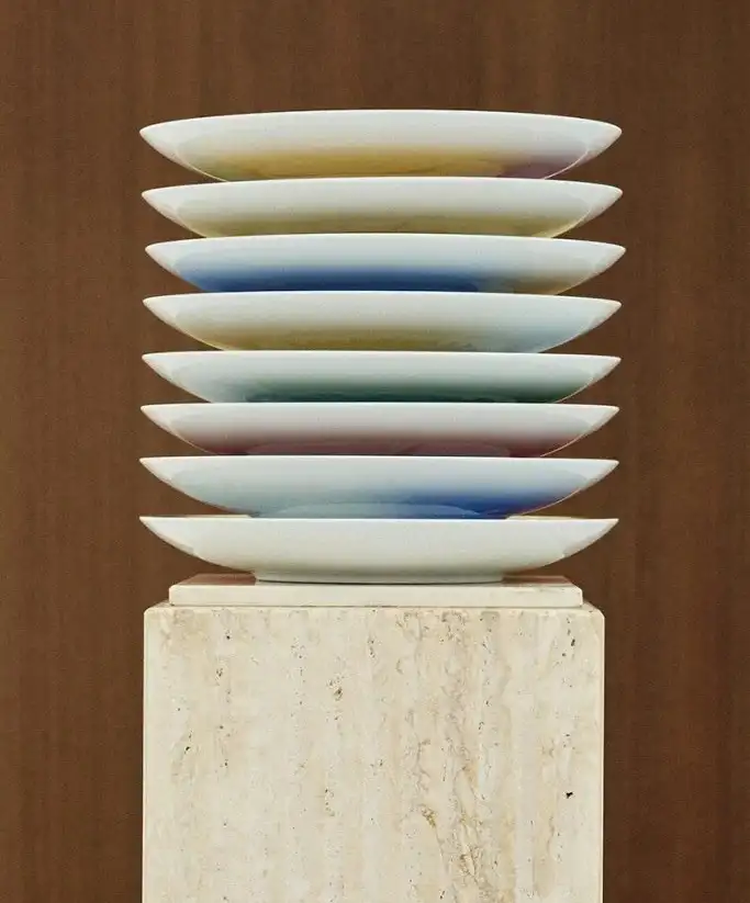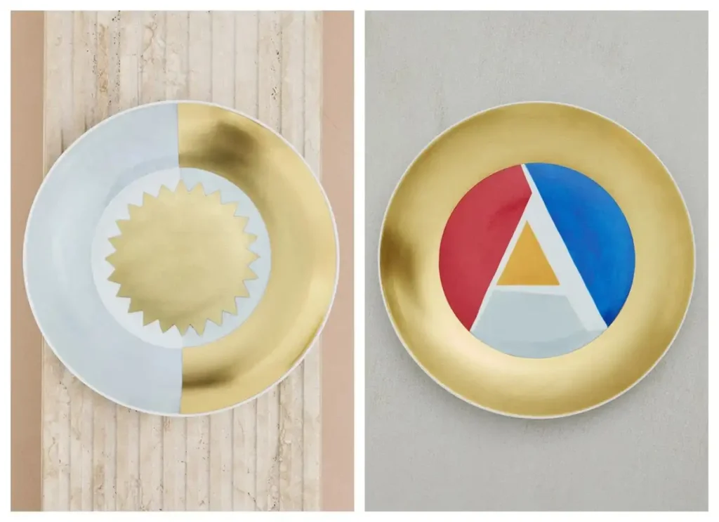 Saint Laurent pays homage to Gio Ponti, one of Italy’s design legends, with a curated exhibition of tableware. Creative director Anthony Vacarello has reissued a collection of hand-painted porcelain plates, originally created for La Villa Planchart in Venezuela, a Modernist architectural gem designed by Ponti in 1953. This collection, known as the Villa Planchard Segnaposto, features motifs like the sun, crescent moon, polar star, and the letter “A”, representing the villa’s original owners, Armando and Anala Planchart.
