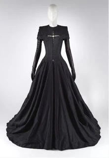 The designer created a French-influenced “entirely new silhouette for the house” with a gloomy romantic touch becoming his signature.