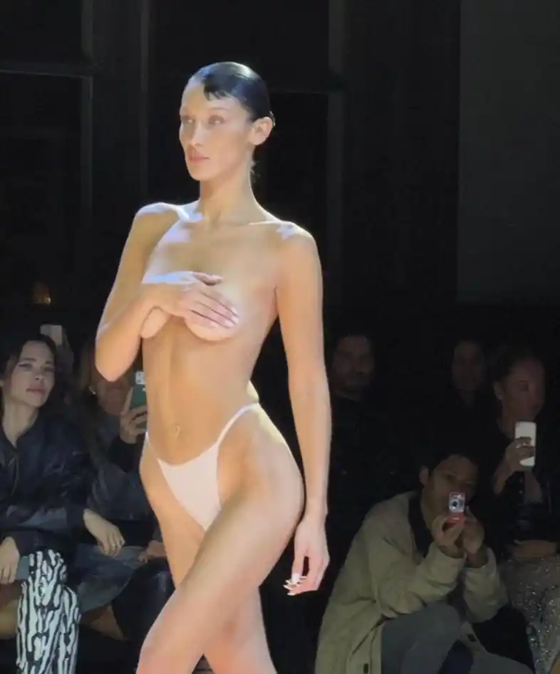It were the designers of Coperni, Sébastien Meyer and Arnaud Valiant who created the most viral content of the week.The final look of the collection was literally created on Bella Hadid. A friend of Meyer, Dr. Manel Torres came out with a colleague and sprayed the near-naked top model with a white substance which in few minutes became matte turning into a perfectly fitted dress. The whole process recalled the unforgettable Spring 1999 Alexander McQueen show where robots spray-painted Shalom Harlow’s white dress.