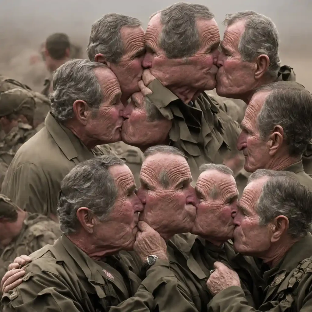 Trump is the very first auto-kiss that we’ve created. While generating a lot of images for the Capitol attack documentary, we tried an experiment featuring Trump engaging in self-kisses and we just loved the result. Trump is also surely the ultimate embodiment of political bride and the manipulation of information in politics. So that’s why we picked him as the main piece.
