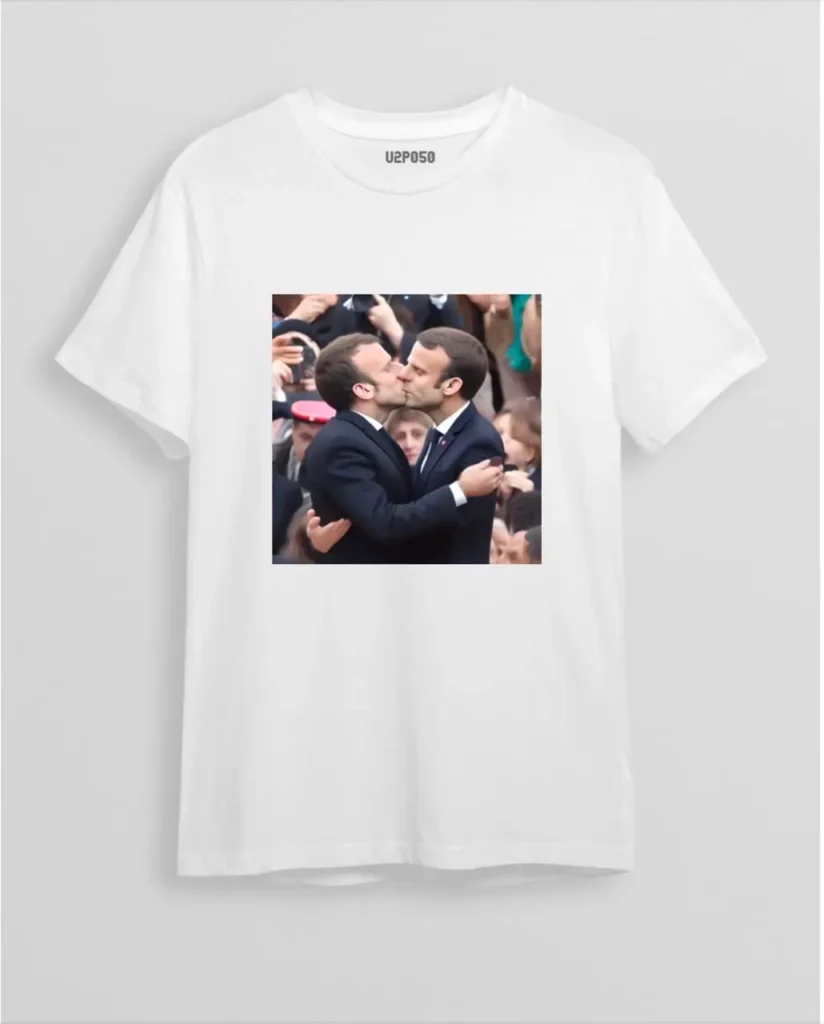 So we tried to bring another virality for these images, propel these out of the screens and infuse them with a tangible presence. Consequently, we’ve plastered the image of Macron kissing himself across Paris, conducted a sandwich board-man performance in front of the Centre Pompidou, and worn out auto-kiss T-shirts in various Parisian venues during Fashion Week.