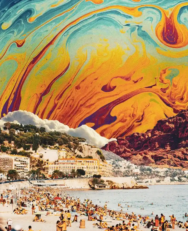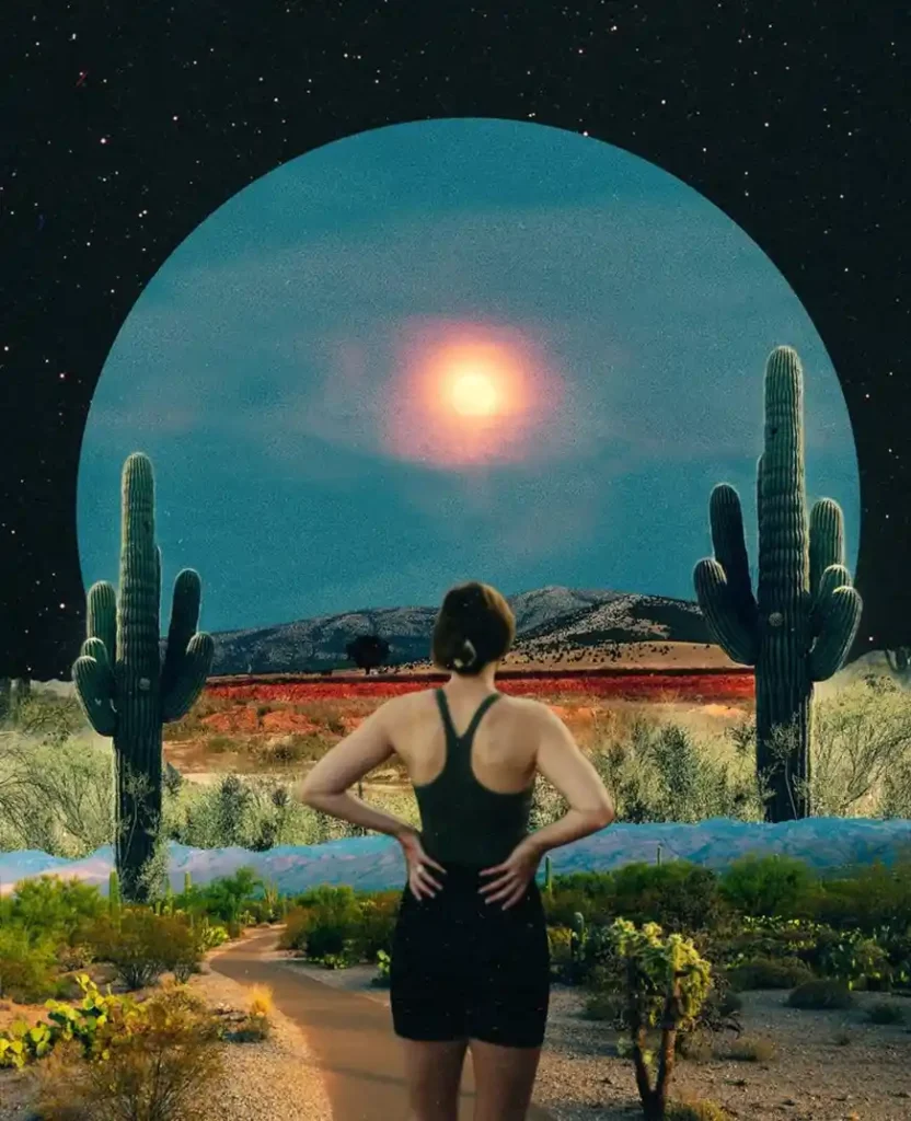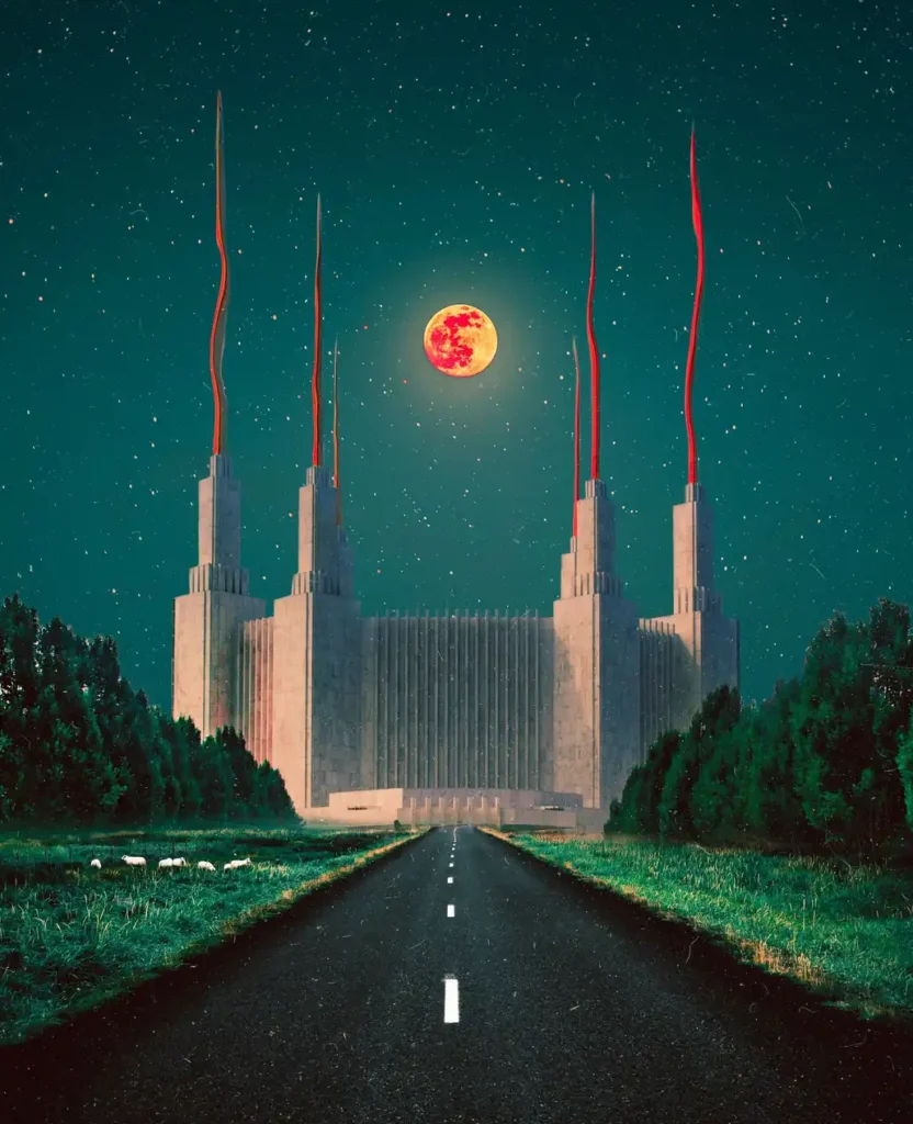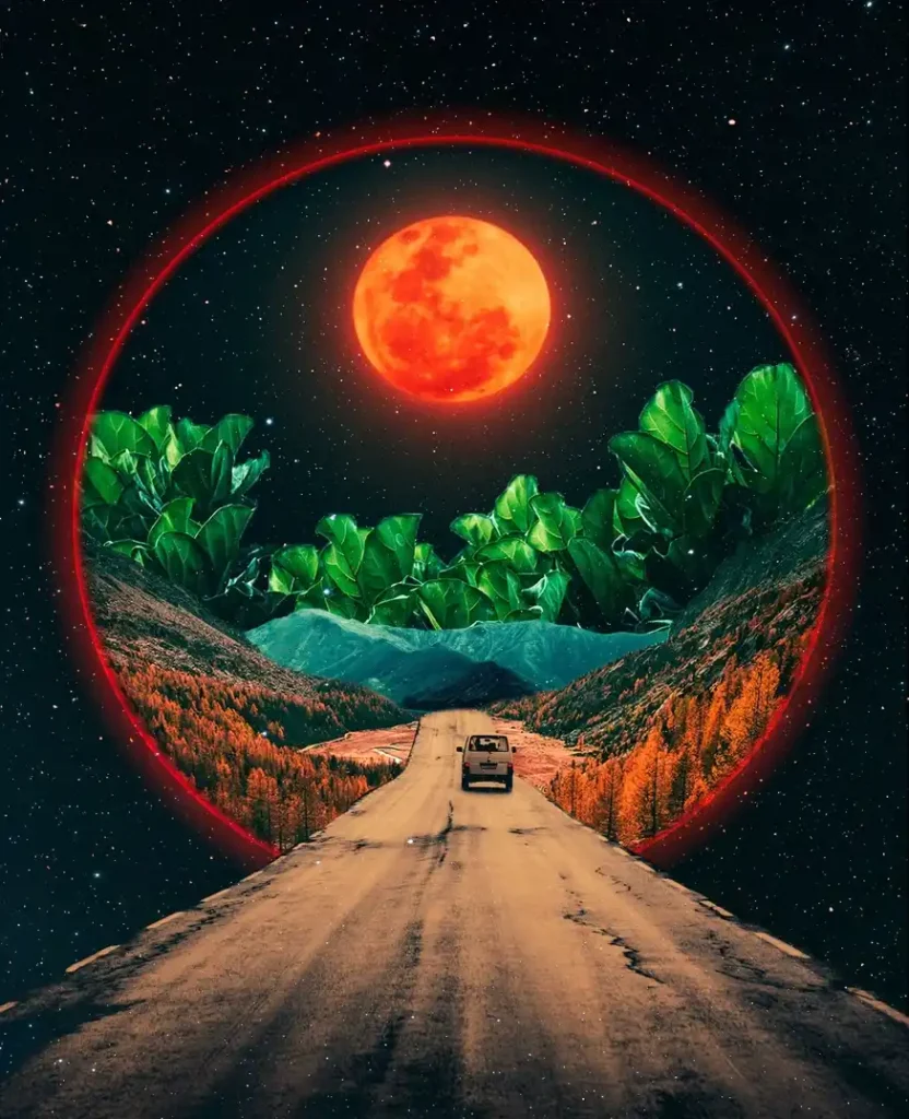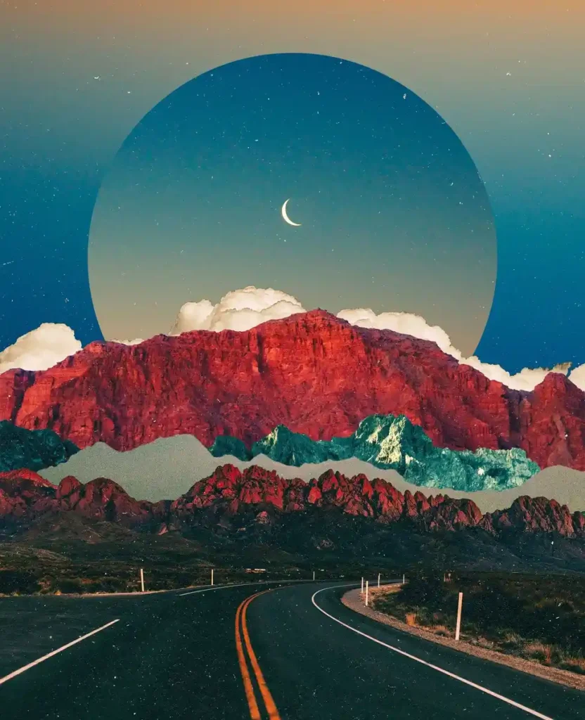 Natasha Chomko, aka Postwook is a young digital artist based in Los Angeles. In her surreal collages where space is omnipresent she combines pieces of landscapes from all over the world to demonstrate how interconnected we all truly are.