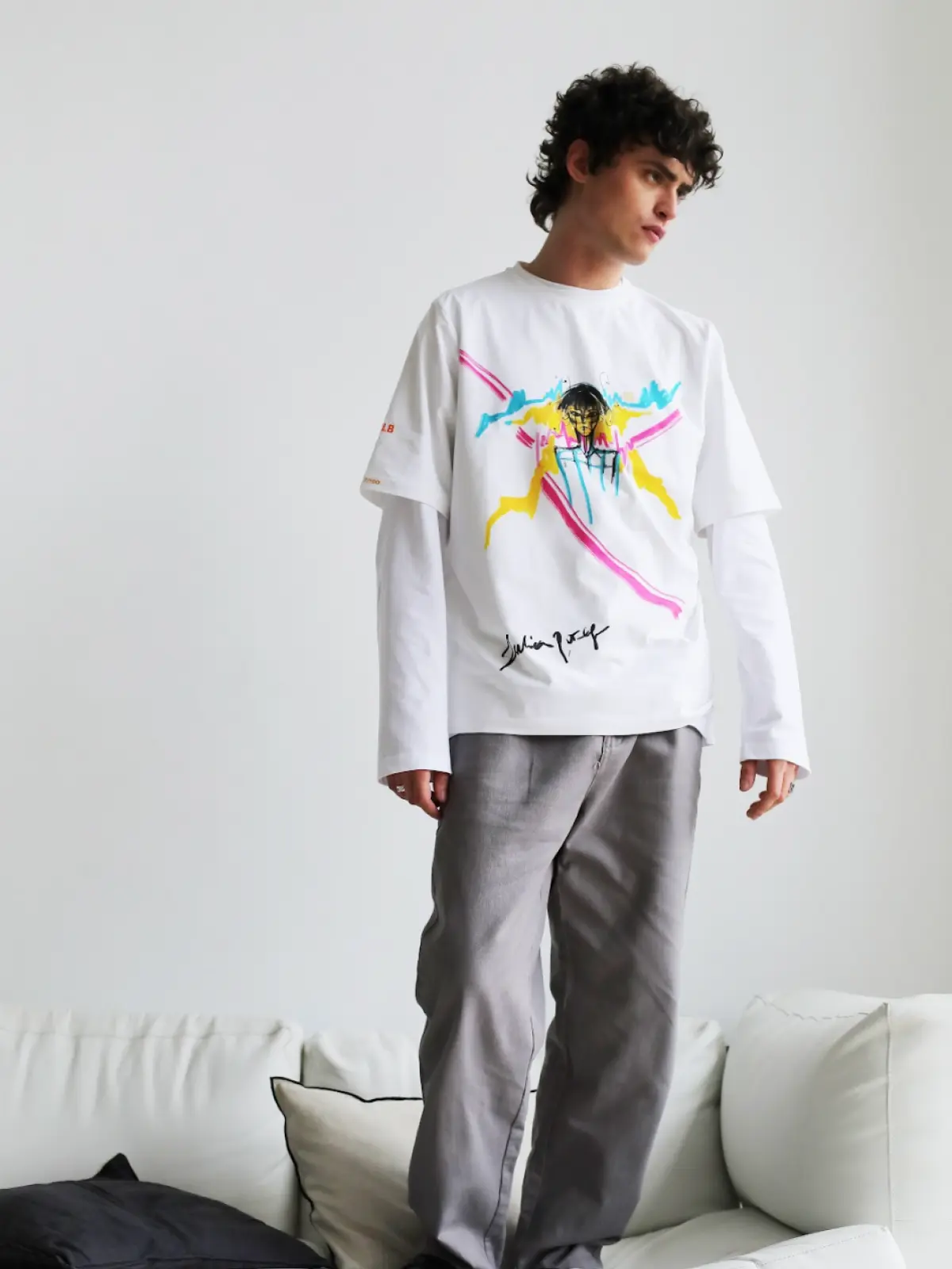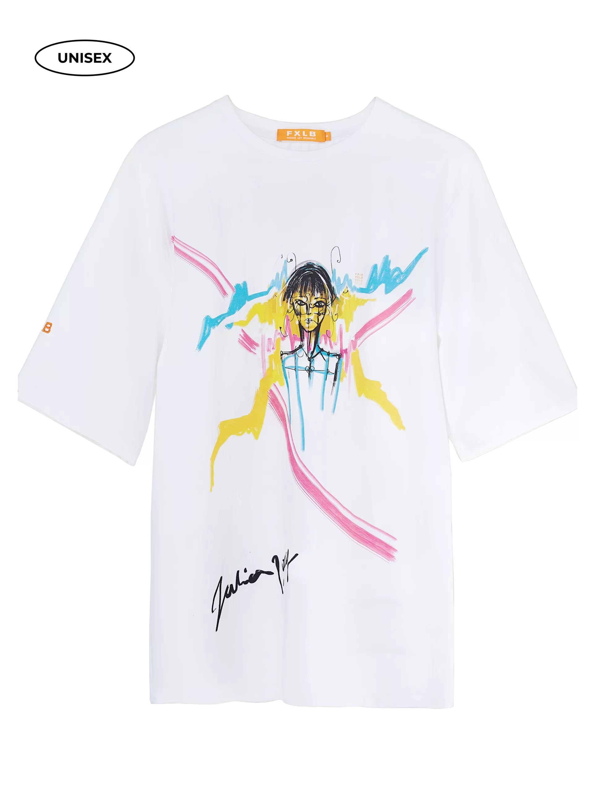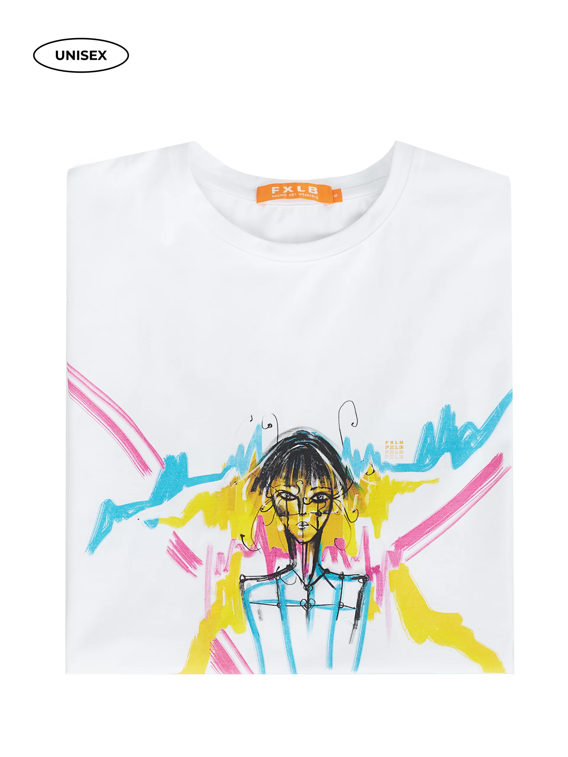DETAILS: Limited edition item, one can find unique LTD number and artists signature on the back. Produced in Tunisia. Colorful print on the front. “FXLB” embroidery on the sleeve, and orange tag with the description of the collaboration located on the back. Find artist’s signature and unique t-shirt number on the orange tag. Cold machine wash.