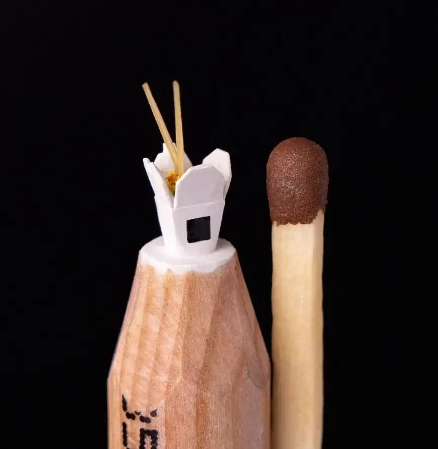 This amazing artist once was not afraid to leave a prestigious job and completely turn his life around. He came, or rather to say, returned to art through digital photography, creating a whole series of unusual still lifes. Then he experimented with painting and began to create miniature paintings on matchboxes, pumpkin seeds, sunflower seeds and rice grains. And then he found something that forever determined his creative destiny – he began to create amazing miniatures on the tips of pencils.