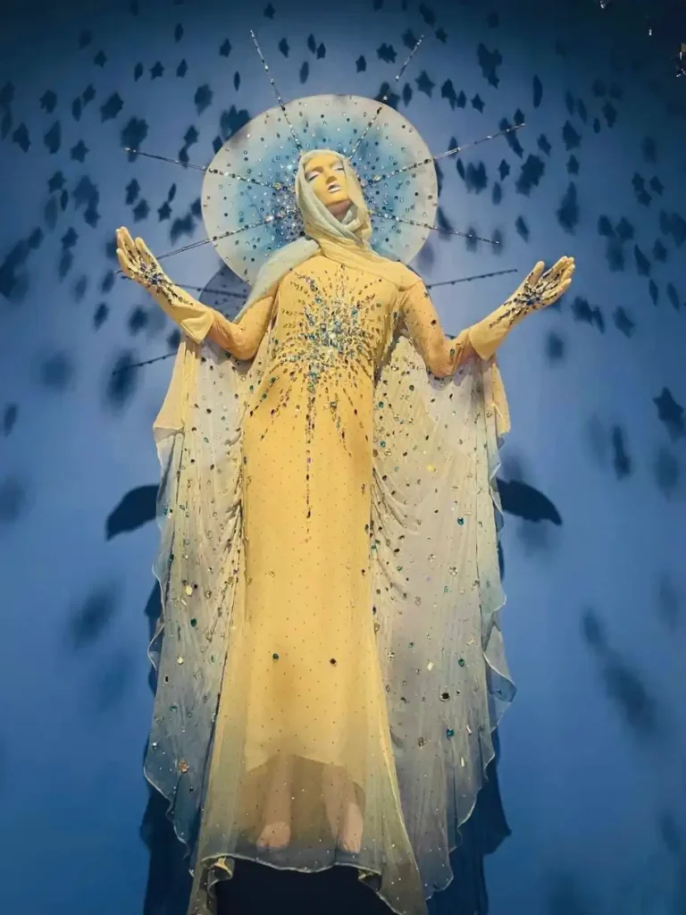 One of the most legendary, provocative and shocking shows of the fashion world of Thierry Mugler was held in 1984, in which the top model Pat Cleveland in the image of the Virgin Mary, descended to the podium from the rooftop.