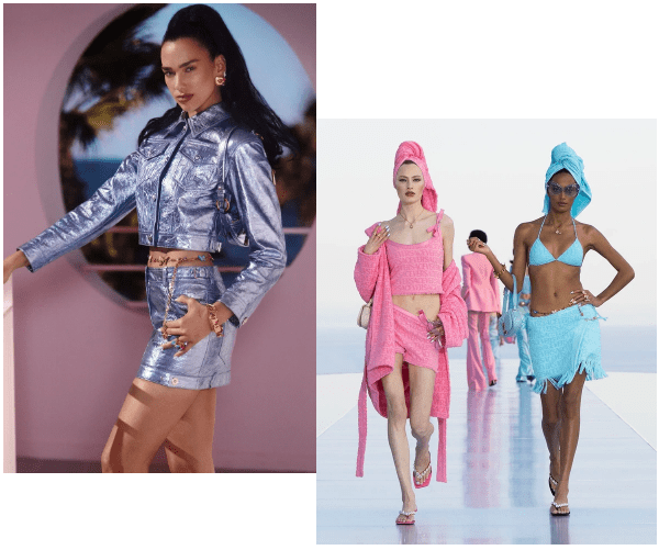 The collection predominantly draws inspiration from the esteemed Gianni Versace’s Spring Summer ’95 collection. However, Lipa adds her disco-inspired twist, infusing the designs with her unique touch.