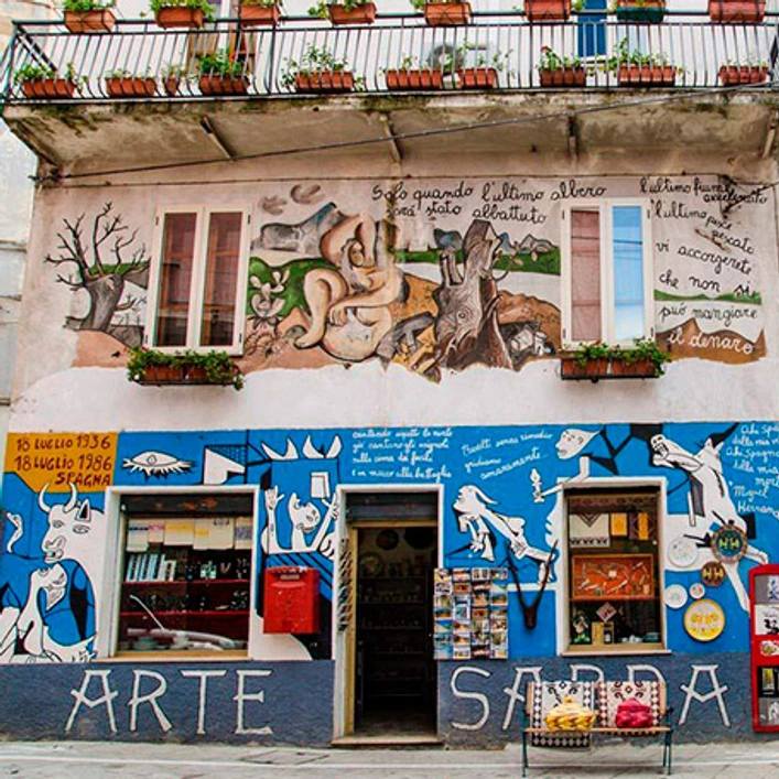 I wouldn’t say I have a favorite Italian artist, my soul is more open to Italian street-art. One time me and my husband were at a friends’ wedding in a little town Orgosolo, in Sardinia. This is a very small and mafia town, the welcome road sign has several bullet holes, and it looks scary in the beginning, but then the town reveals its beauty. It is very touristy, because of abundant colorful graffitis covering multiple city walls. I am very fond of bright colors, thats why I have these views deep in my memory, it was incredible seeing this street art with my own eyes.
