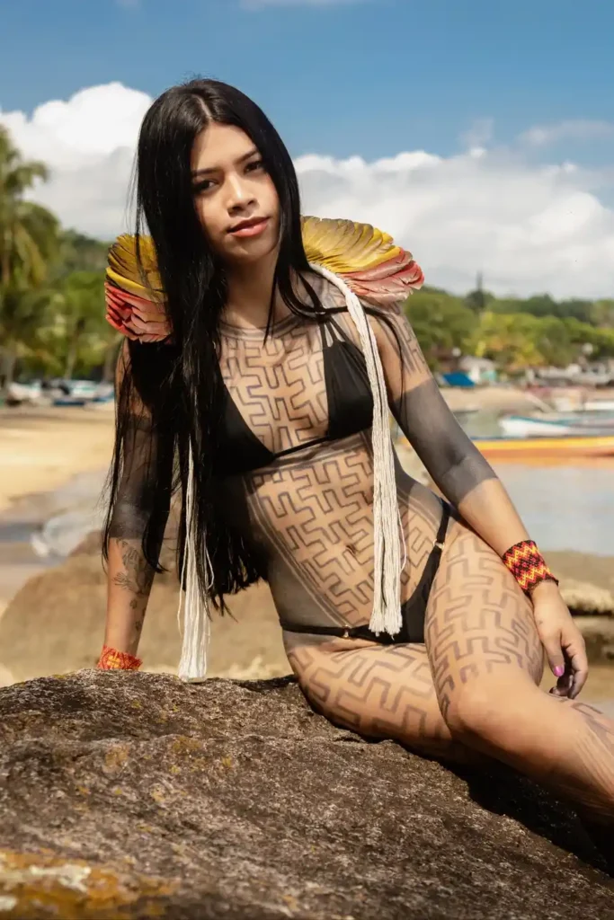 As a brand that’s already known for its sustainable and eco-friendly philosophy, Mabi Swimwear sees fashion as a powerful tool for promoting social and environmental causes. By incorporating the aesthetics of indigenous art into their products, the brand aims to appeal to trend-conscious consumers and raise awareness about the importance of preserving our planet’s natural beauty.But the Yarikazu X Mabi Swimwear collection is more than just a stylish statement. It’s also a philanthropic effort, with 100% of the profits going towards supporting Yarikazu’s education at Law School. Yarikazu, a passionate advocate for the preservation of indigenous culture and traditions, is using her education to fight for the rights of her people and the Yanomami village, where she calls home.
